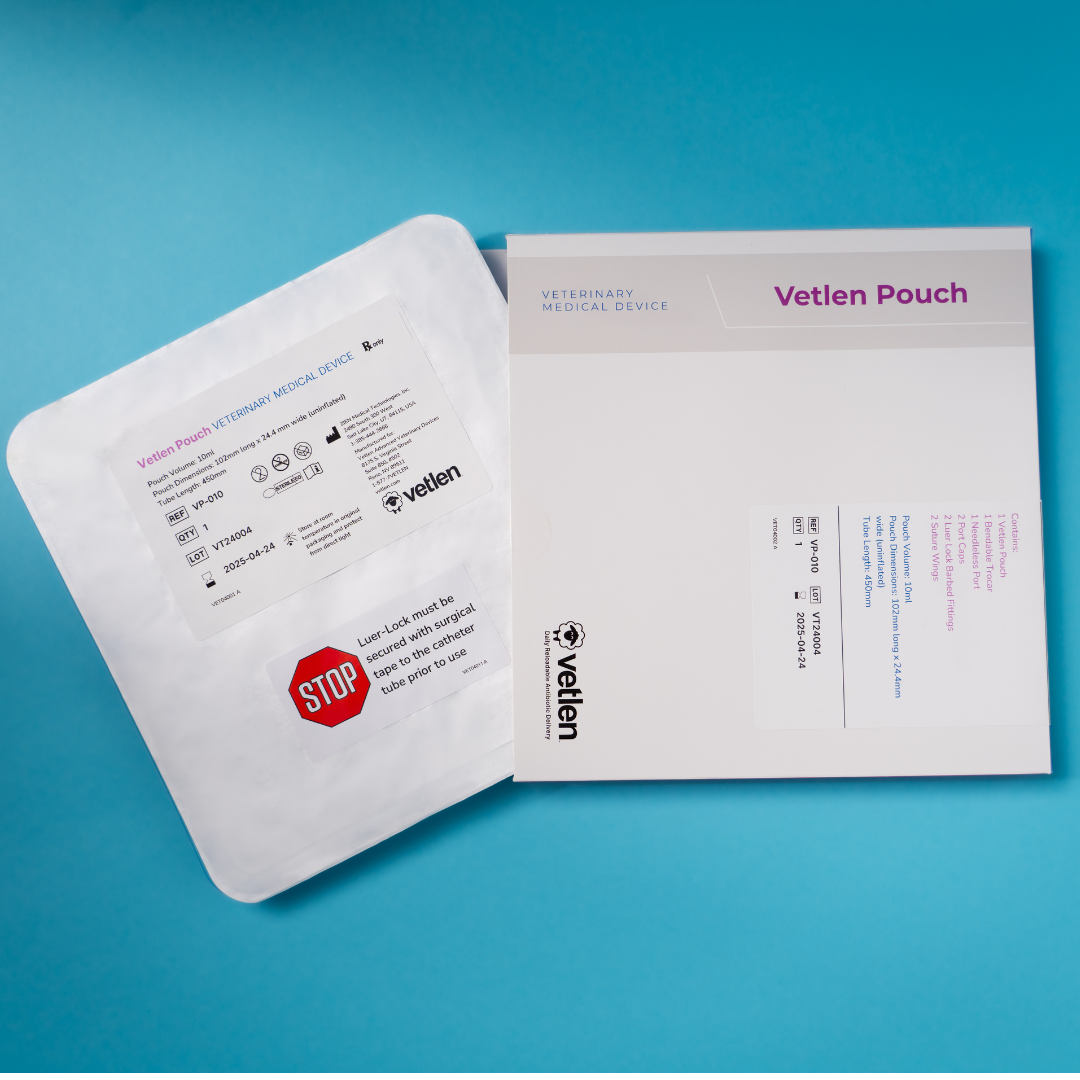The Right PlaceThe Vetlen Pouch’s syringe-based replenishing system makes it easy to administer the optimal antibiotic locally, directly in the surgical or traumatic wound.